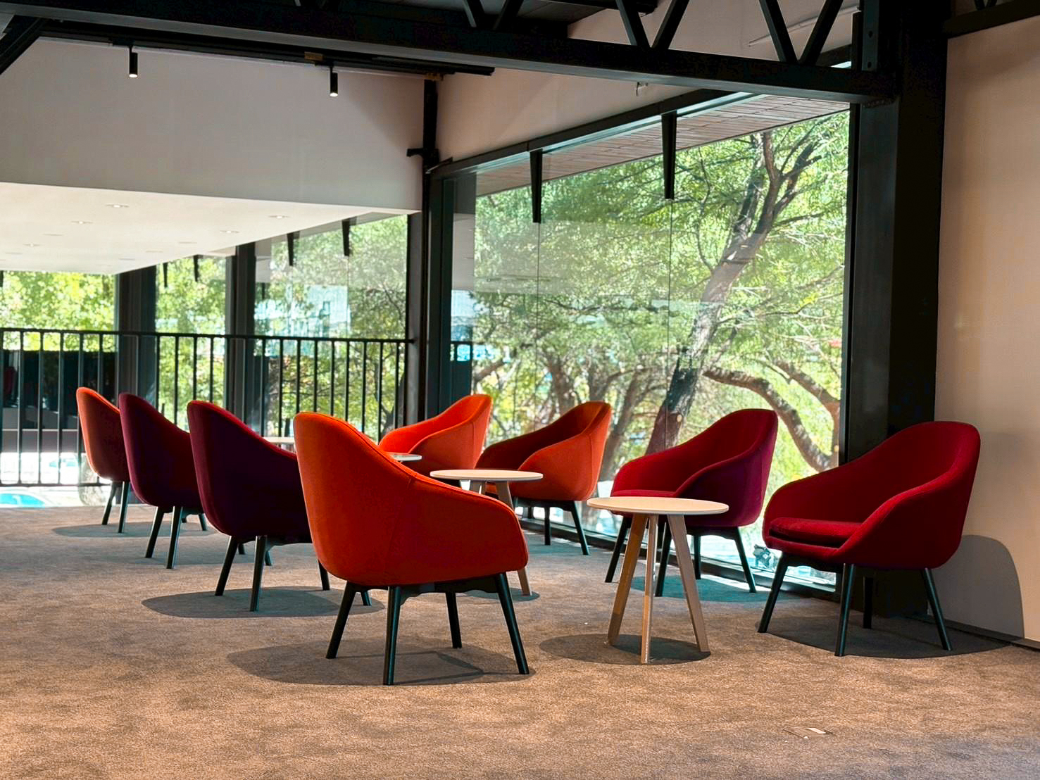 據點周邊綠意與城市節奏交織,使展示中心以法式優雅結合自然元素打造空間風格,呈現 PEUGEOT 與 CITROËN 所代表的都會生活美學,營造專屬品牌的沉浸式賞車體驗。