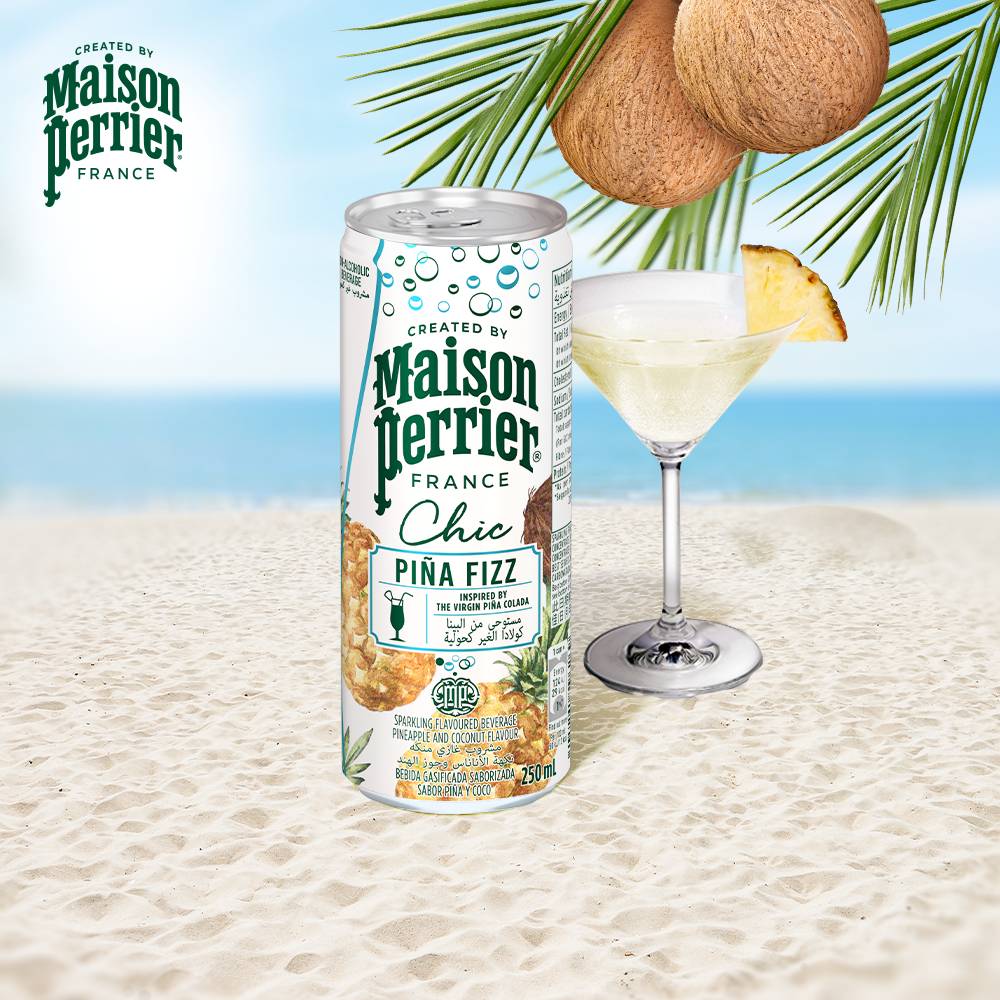 Maison Perrier 承襲法國百年氣泡水工藝,經典豐沛氣泡口感與優雅品牌形象,致力於將優雅與創新注入日常飲品中,從法國巴黎到你的手中,氣泡之間流動的是法式靈魂及時尚態度,全新「鳳梨可樂達」不僅還原重現世界經典調飲「Piña Colada」鳳梨可樂達的熱帶風味,更以輕盈低卡、無酒精的形式,讓每一口都帶來放鬆與歡愉,將熱帶陽光氣息封在絢麗氣泡中。持續為全球消費者打造兼具精緻與創新的氣泡飲品體驗,在繁忙快節奏的城市之間,打開一瓶Maison Perrier鳳梨可樂達,充滿放鬆歡愉的能量,讓生活多一點閃耀,優雅也可以很有態度。
