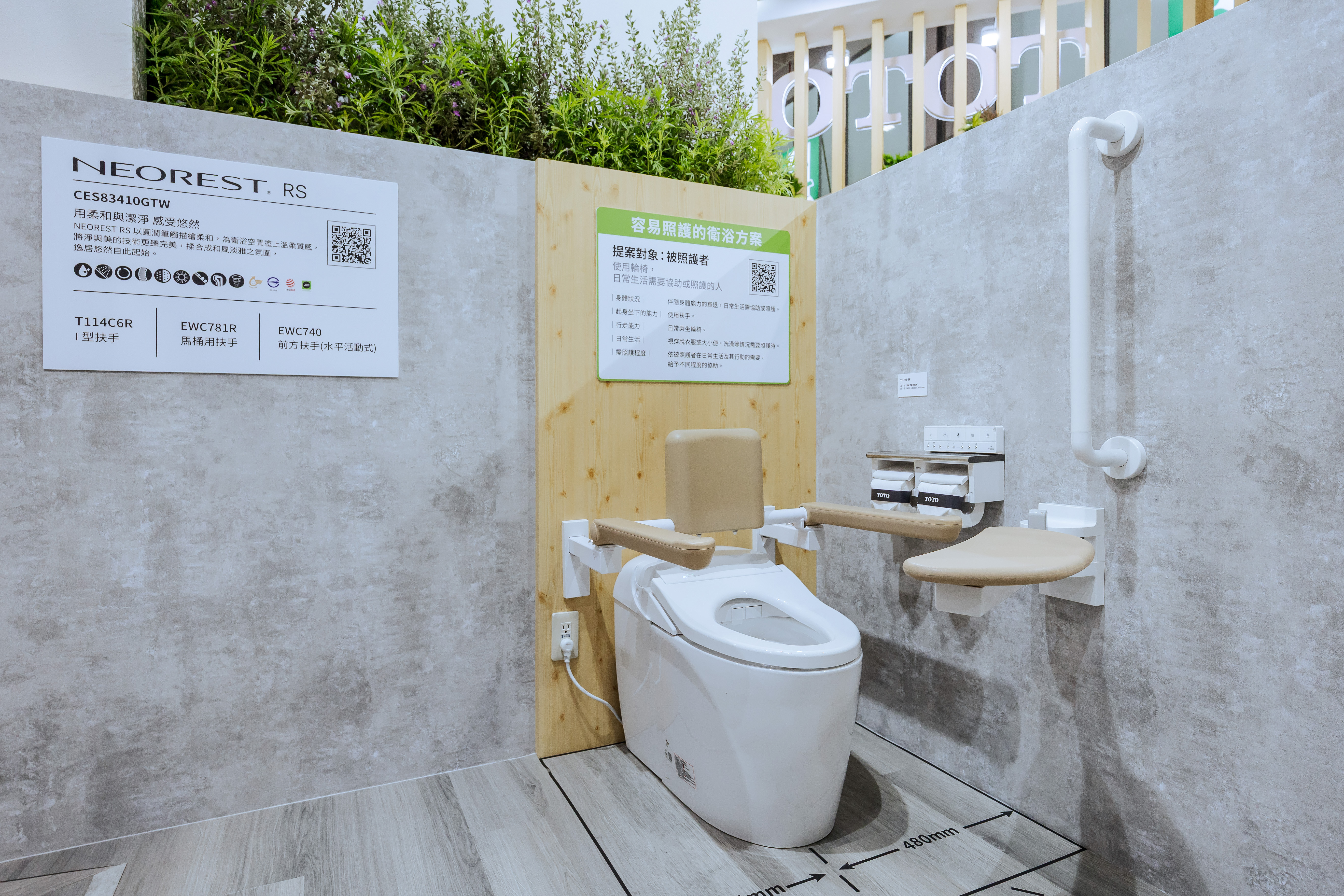 【福祉住宅】選用外型柔和圓潤的NEOREST RS一體形除菌全自動馬桶,滿足生活需求並提供各式安全扶手,讓使用者能因應不同需求選擇,體現TOTO以人為本的設計理念,打造安全與舒適兼具的空間。