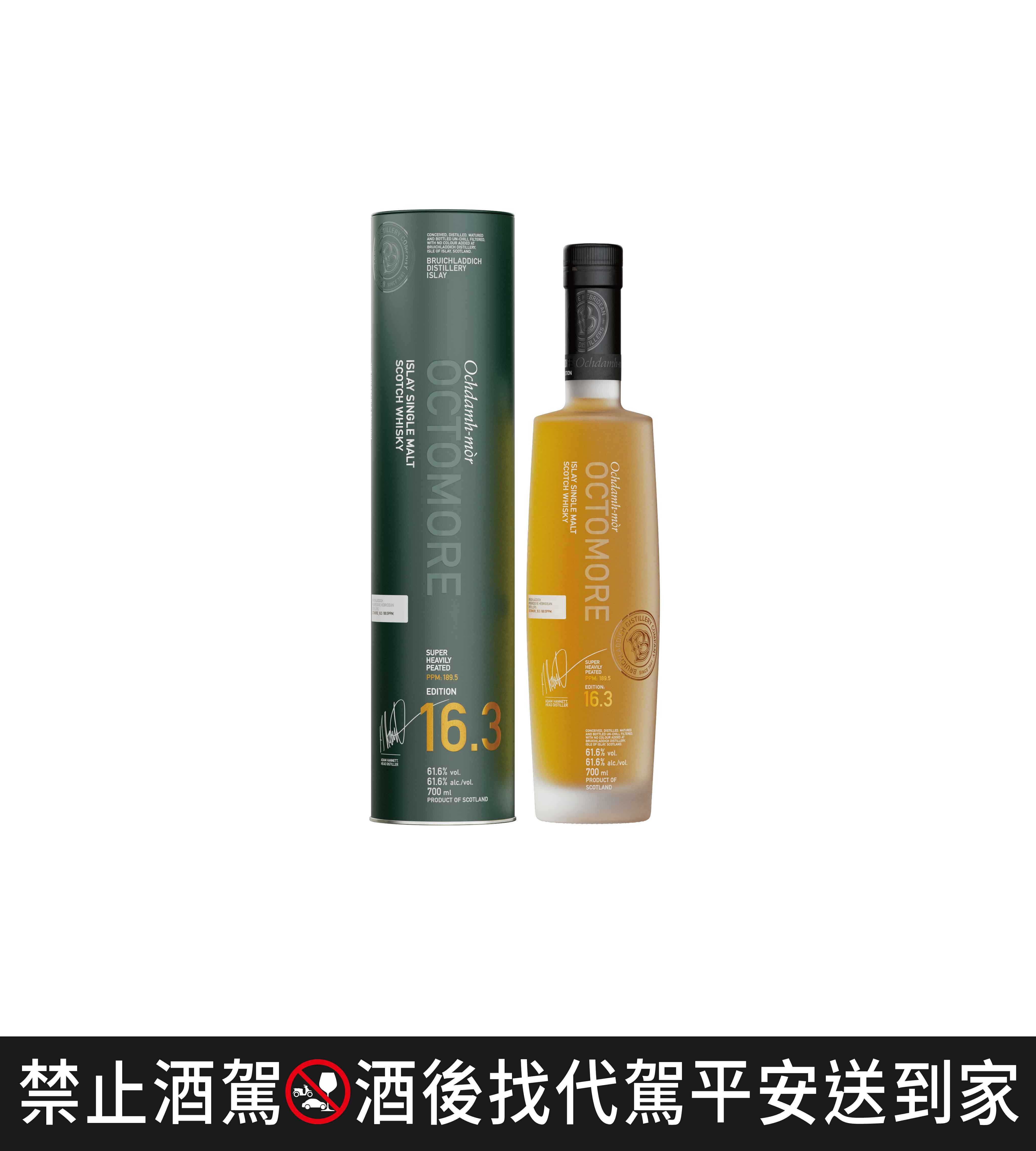 若想體驗最濃烈的煙燻泥煤味,並見證奧特摩最具大膽和實驗性的成果,奧特摩 .3 系列一向都被譽為「奧特摩中的奧特摩」,展現極致的泥煤力量與風土個性。此次奧特摩 16.3 的泥煤值 189.5 PPM,酒精濃度 61.6% ,使用單一農場、單一田地、單一年份的艾雷島單一大麥。酒廠選用來自艾雷島 Octomore 農場「Church Field」田地的大麥,全程於波本桶、蘇玳甜白酒桶與 PX 雪莉桶中熟成 5 年。口感帶出蜂蜜麥芽、烘烤穀物與獨特泥土氣息,煙燻與海鹽交織出極富層次的風味。 Adam Hannett 也補充:「本地種植與收成的艾雷島大麥,帶給酒液完全不同的靈魂。對我而言,威士忌應該喚起一種對土地的感受,而 16.3 中突出穀物與泥土的風味,正是對艾雷島風土的最佳詮釋。」