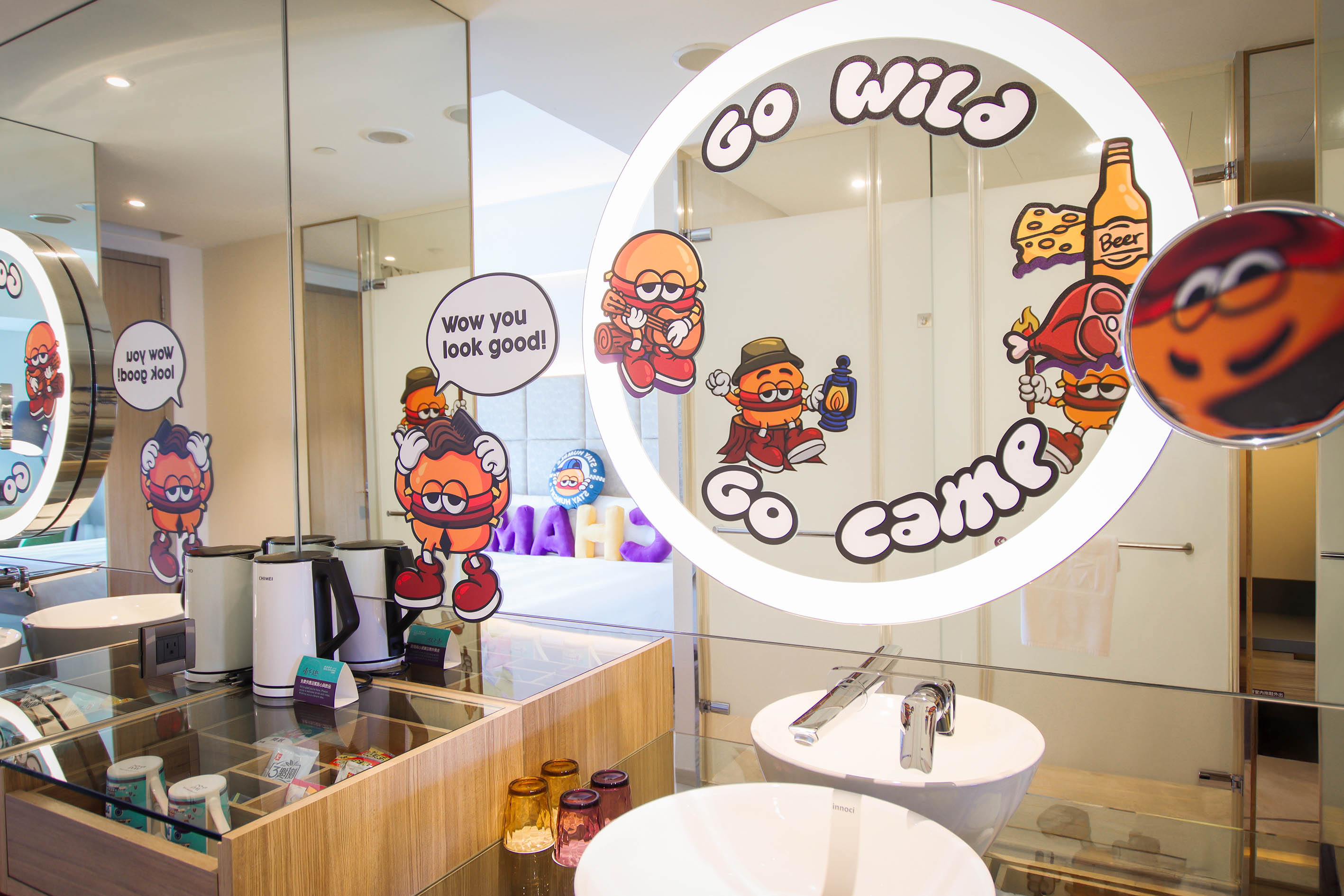 凱撒趣淘漫旅台北一直以趣味、自由自在的玩樂風格深受旅客喜愛,此次特別攜手台灣知名人氣插畫家日頭LITTOP,推出「Go Wild, Go Camp」聯名主題房。日頭LITTOP創作以厭世漢堡主角「阿堡」、與一群美式食物朋友為核心,透過獨具風格的插畫敘事,呈現生活中療癒與反差萌的幽默趣味,風格個性鮮明、設計潮流,深受年輕族群喜愛。此次合作將阿堡角色融入客房空間,注入療癒陪伴氛圍。主題房內設有阿堡造型抱枕、趣味對話立牌與專屬鏡面貼等設計巧思,讓每一處都成為拍照打卡熱點,為旅客帶來充滿驚喜與話題性的住宿體驗。