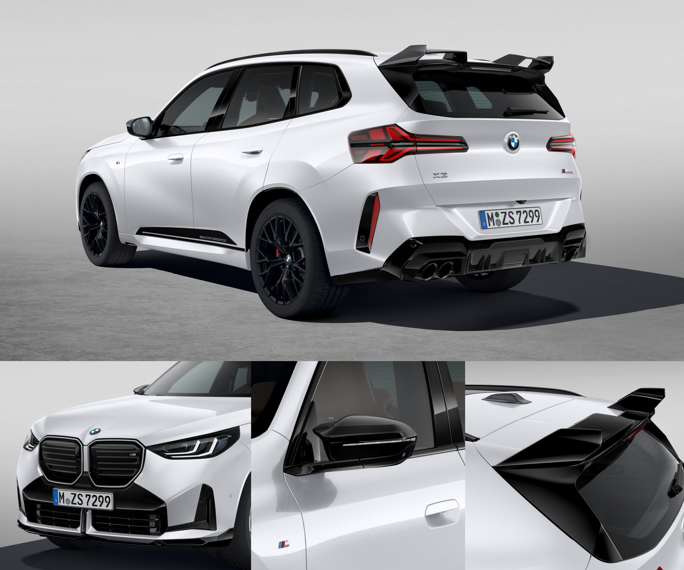 「BMW X3 M Performance Parts探索版套裝」內含M款高亮黑水箱護罩組、M款碳纖維後視鏡外蓋,以及M Performance高亮黑後擾流尾翼。透過高亮黑烤漆與碳纖維材質的精緻交織,細膩勾勒車身輪廓,將視覺焦點自然凝聚,於日常駕馭之中低調展現不凡氣場。探索版套裝不僅強化車頭與車尾的動態張力,更藉由空氣力學元素的巧妙點綴,進一步襯托全新X3兼具精緻與力量的設計語彙。整體風格內斂卻充滿層次,為講究細節質感與品味格調的車主,打造專屬且獨一無二的個性座駕。