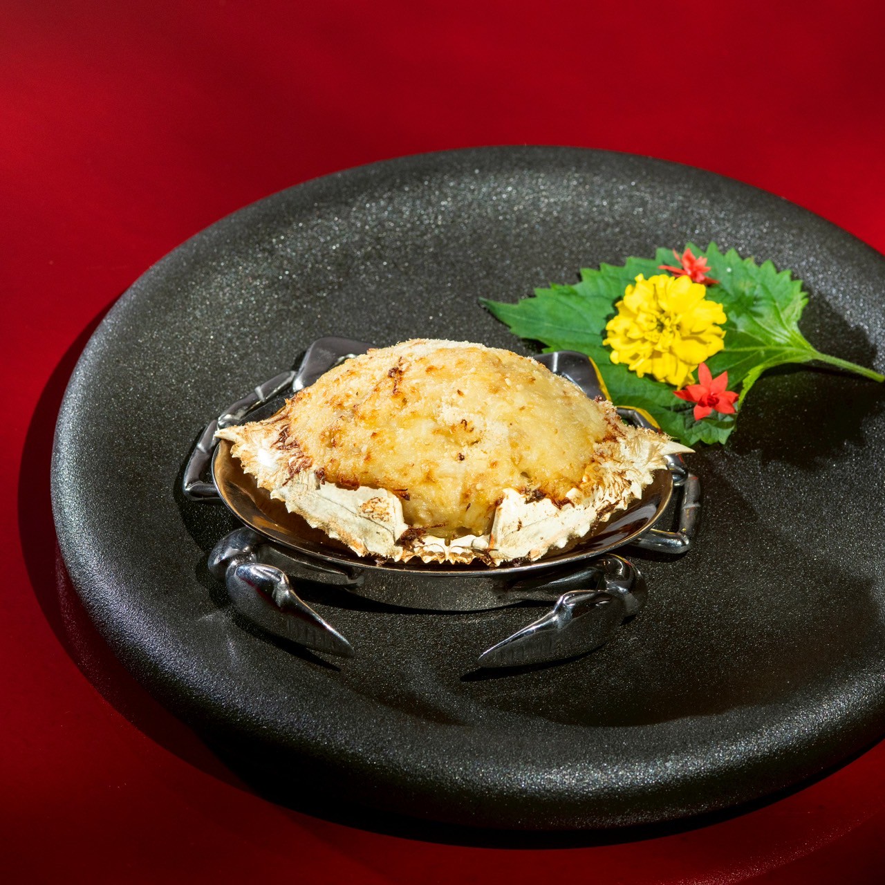 蟹粉松茸焗蟹蓋:以花蟹肉絲搭配新鮮洋蔥與松茸,再融入濃郁大閘蟹蟹黃蟹膏,焗烤後香氣四溢、口感綿密,是秋蟹季不可錯過的必嚐美饌。