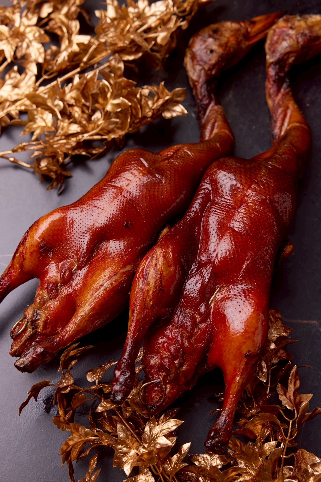 妙齡乳鴨:以 28 天小乳鴨為主角,經過秘製醃料填肚、表皮塗上 “風乾一日風乾工序”的上皮水工法,烤成外酥脆如琉璃、內裡多汁細嫩的頂級滋味,每一口都令人難忘 。