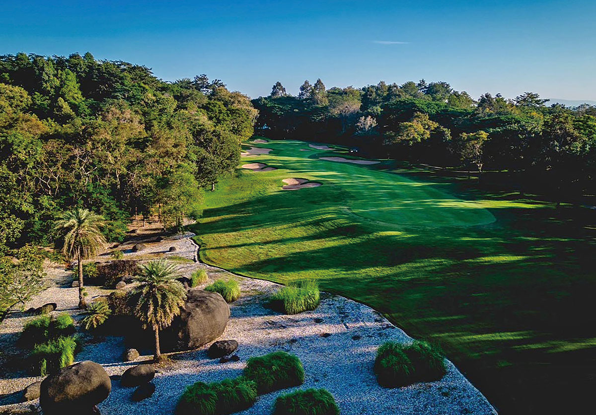 如果提到去清萊打球,當地人會推薦的一定是Santiburi Chiang Rai俱樂部。遠在泰北邊境的清萊,竟然也能遇見由名家小羅伯崔特瓊斯所設計的作品。這座錦標賽型球場落成於1993 年,距離清萊市中心僅7公里左右。球場建築於山谷及丘陵地形之上,球道穿梭於綠樹濃密的坡地、水池與湖泊之間,背靠清萊群山,營造出坐落於高海拔山林間的球道氛圍。