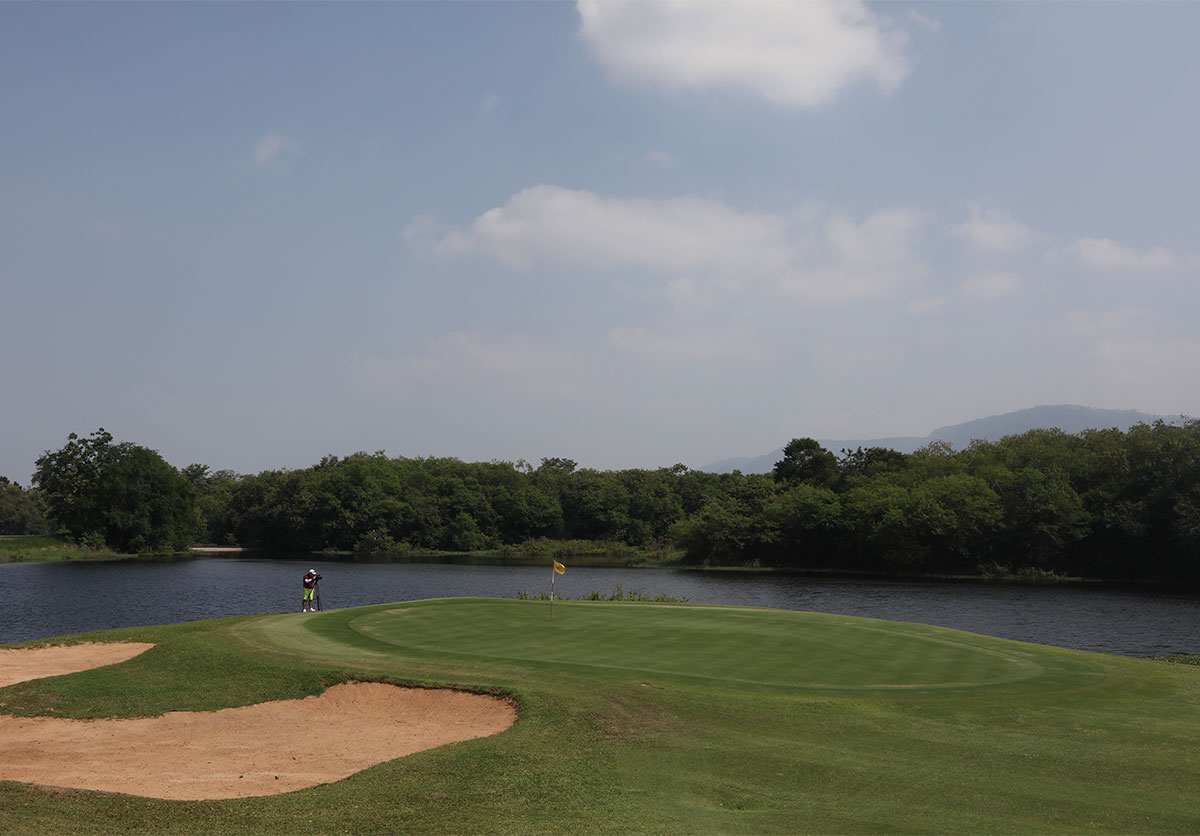 ▲金熊設計的奇利瑪雅渡假村球場雖然是在山林間,卻有許多水障礙設施。