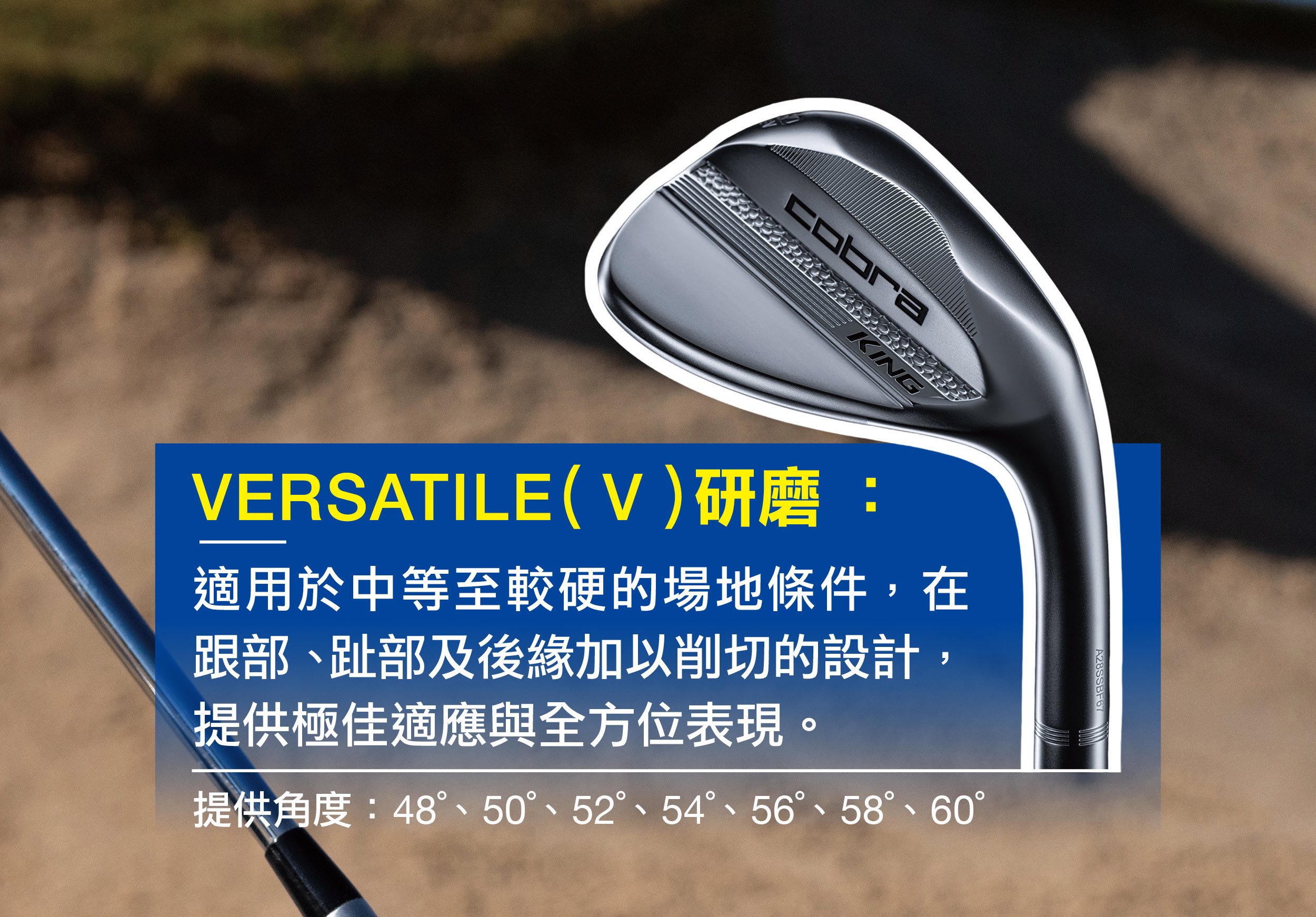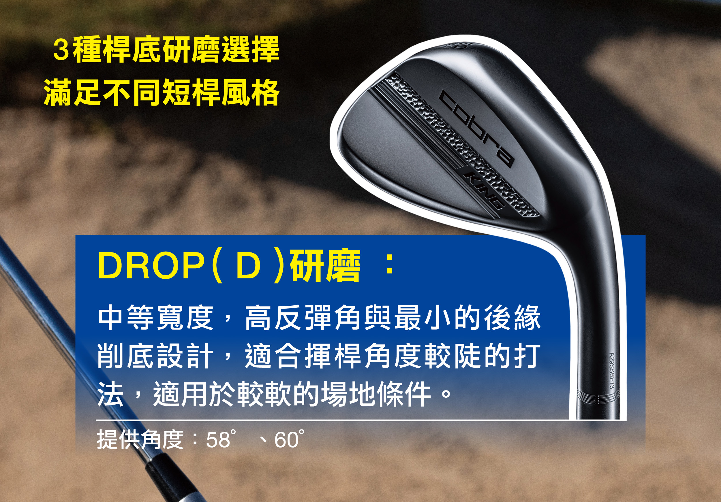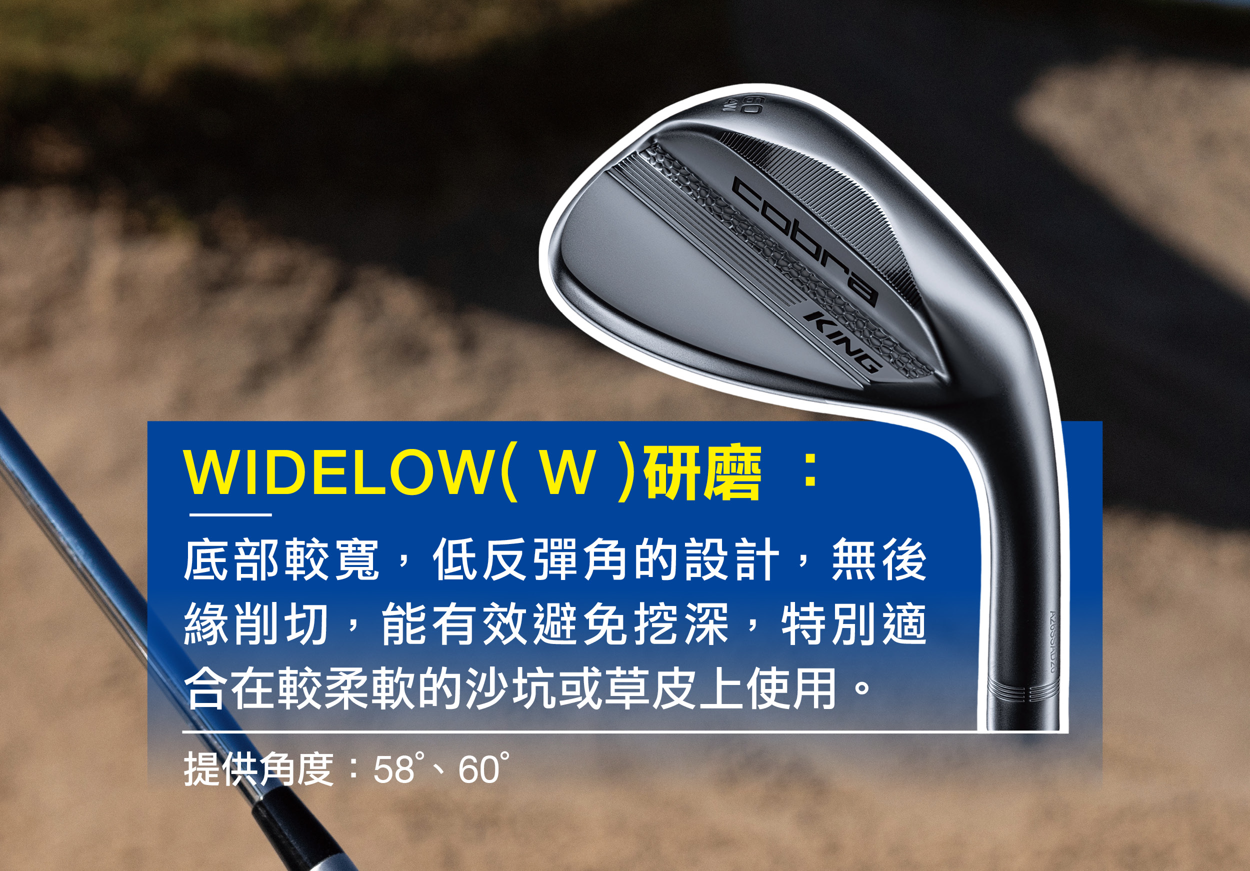 從挖起桿的角度來看,COBRA的KING系列挖起桿,幾乎包含了每一項進階好手們所需要的元素。包括銳利的後旋表現、優異的回饋觸感、多樣化的底部設計以及能更銳利劃過草皮的能力。