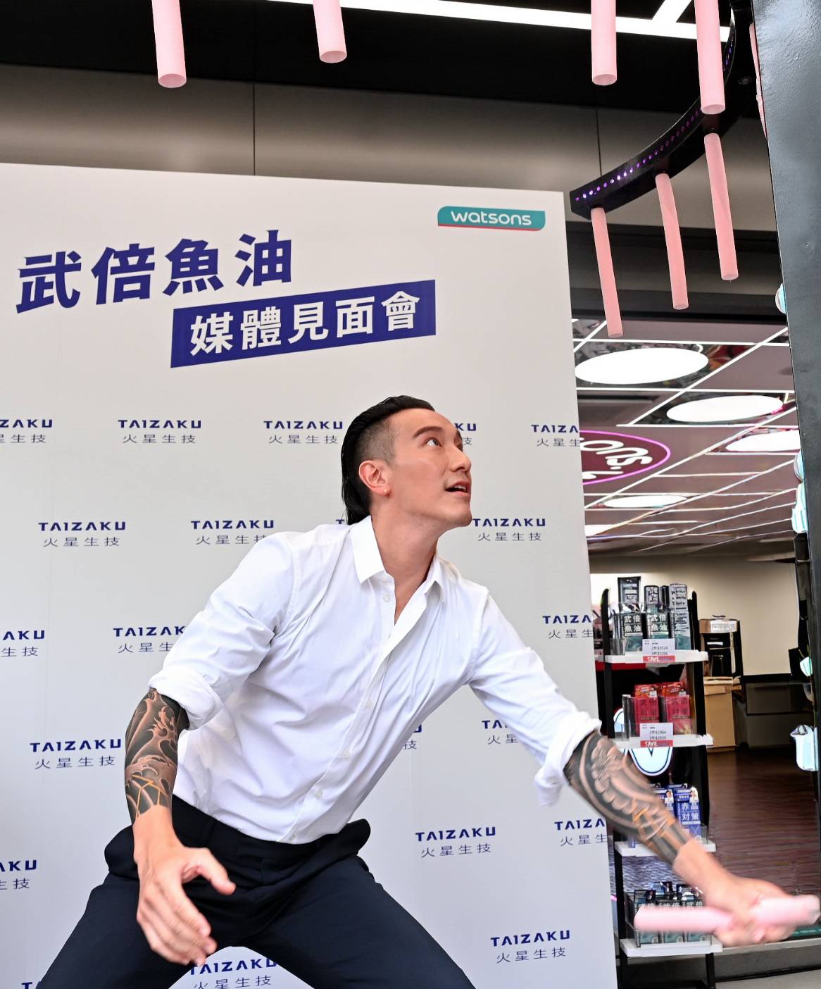 男星王陽明近期除了積極宣傳即將上映的角頭宇宙最新電影《角頭-鬥陣欸》外,更首次代言男性保健食品──武倍魚油,於昨日(7/31)在屈臣氏替代言品牌站台。王陽明自爆拍攝武倍魚油廣告前每天都至少花30分鐘練手臂,因為第一次甩戰鬥繩超怕NG,好在拍攝時很順利。讓他得意的表示:「有吃武倍魚油有差!體力真的變很好。」為了展現代言人的MAN POWER真實力,王陽明現場更挑戰極速抓棍遊戲,百發百中的他充分展現完美戰鬥力、反應力!適逢父親節前夕,火星生技祭出多項優惠,幫助每個像王陽明一樣蠟燭多頭燒的爸爸們,有感提升戰鬥力與思緒力,遊刃有餘地迎接生活中各式各樣的挑戰。
